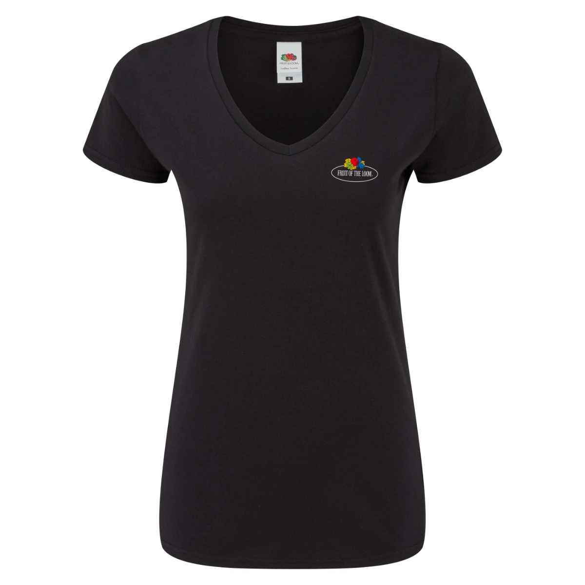 לחולצת הטי הקז'ואל יש התאמה נשית וקו צווארון בצורת וי, לוגו הפירות האייקוני בצד החזה משלים מראה מושלם.